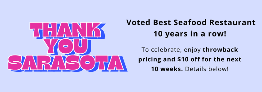 Thank you for voting us Sarasota’s Best Seafood Restaurant 10 years in a row!