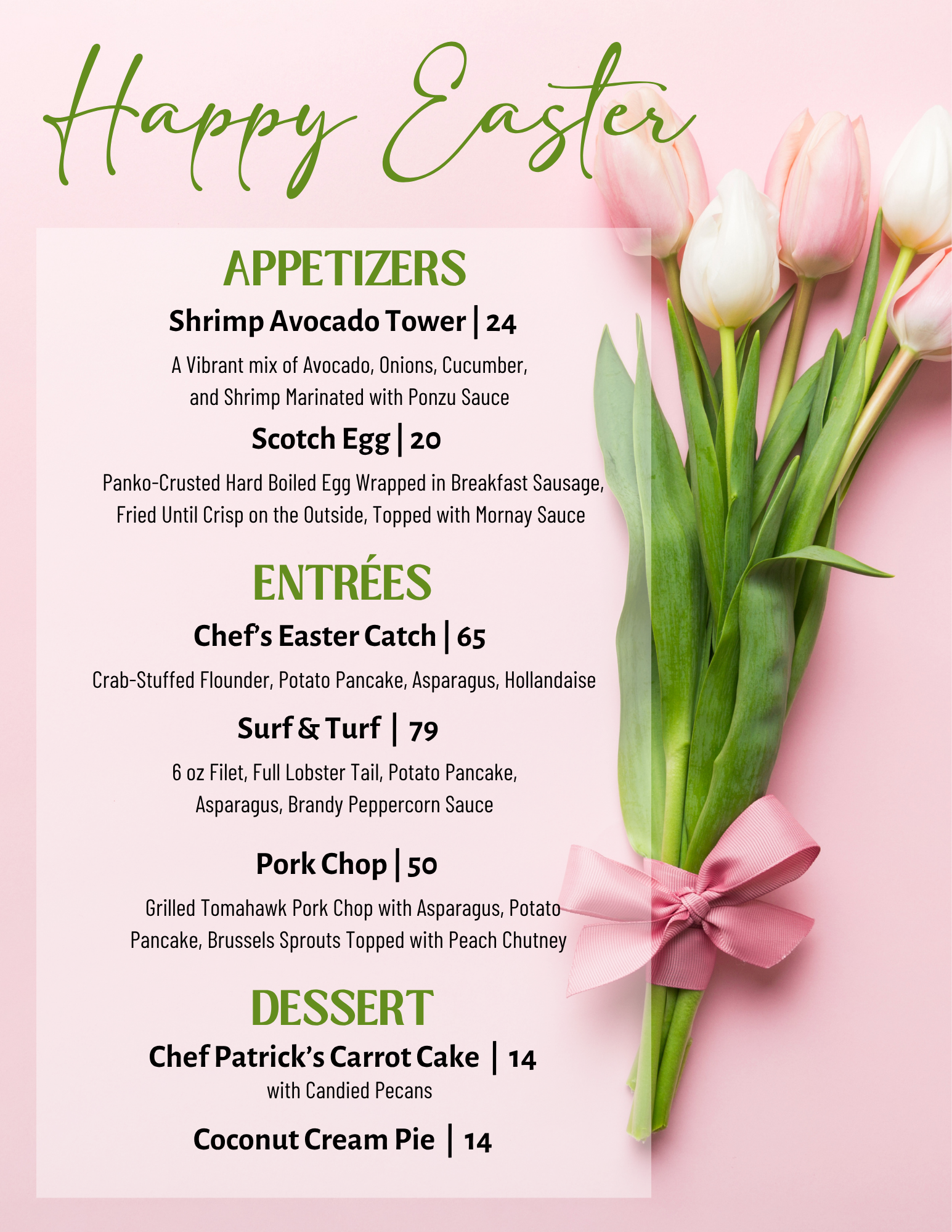 Menu served all day Sunday, April 5th in conjunction with regular menus.