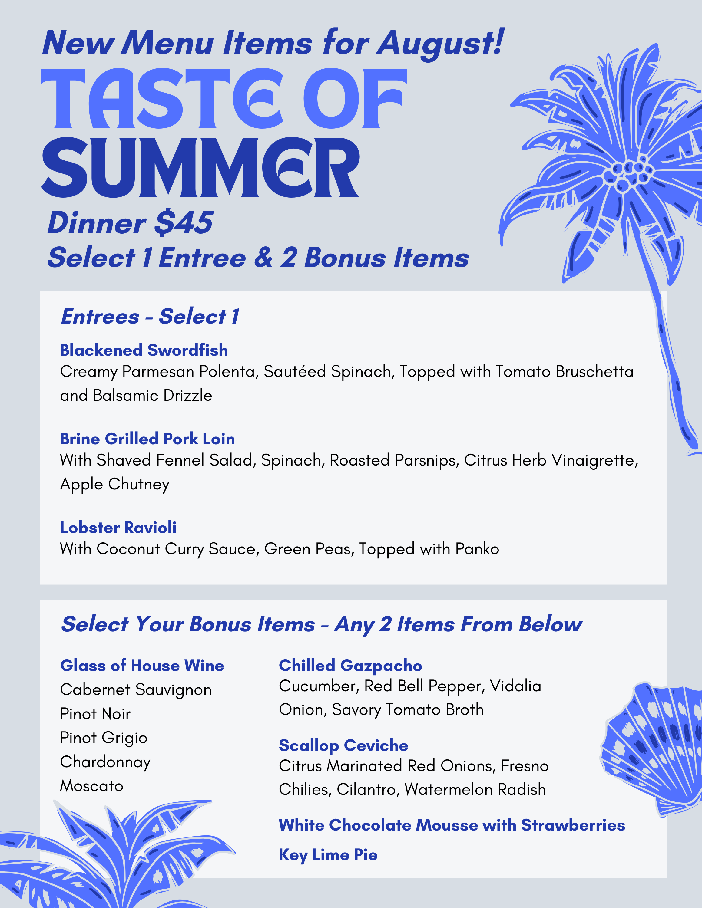 August Dinner Menu